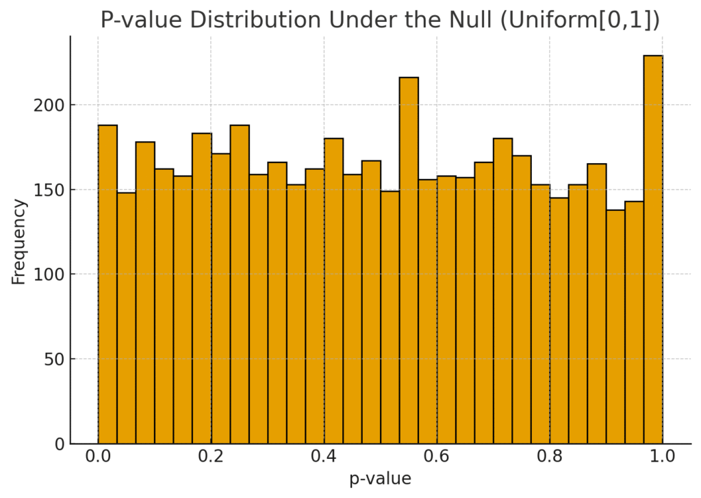 - p-value: Probability of observing results at least as extreme as the current test, if H₀ were true.